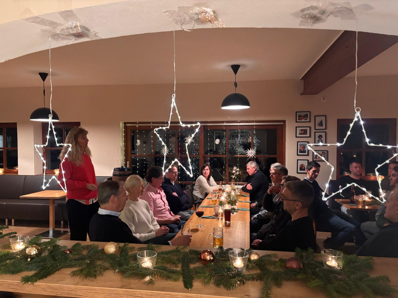 Seine Weihnachts- und Saisonabschlussfeier der Erwachsenen hat der Tennisclub Oberding in einem würdigen Rahmen abgehalten. Im festlich geschmückten Vereinsheim am Moosrain fanden sich gut 35 Mitglieder ein, um gesellig das Jahr 2025 ausklingen zu lassen. TCO-Vorsitzende Ute Attenberger ließ in einer kurzen Rede die Erfolge und Ereignisse Revue passieren und blickte auch auf 2026 voraus. Neuwahlen stehen demnächst an, der Club wird sich aufgrund etlicher Abschiede auf Vorstands- und Ausschussebene neu aufstellen. Die Saisonplanung läuft im Hintergrund ebenfalls bereits auf Hochtouren.